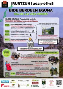 El próximo 18 de junio (domingo) se celebra el Día de las Vías Verdes con una jornada repleta de actos: itinerarios guiados por la vía verde del Plazaola a pie y en bicicleta, visita interpretada al balcón de los buitres, mercado de artesan@s, paseos en burro, ginkana familiar...y mucho más! Anímate a participar! Más información en: DIA DE LAS VÍAS VERDES 2023 - IRURTZUN nota prensa CAST