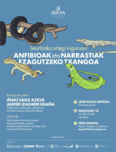 Biologoak gidari: Iñali Sanz Azkue Ander Izagirre Egaña Anfibio eta narrastietan adituak eta Azanzadi Zientzia Elkarteko kideak Oharrak: Ezinbestekoa da izena ematea. Adin guztientzako egokia. Amaiera atsedenlekuan emango zaio: eraman etxetik bazkaria.