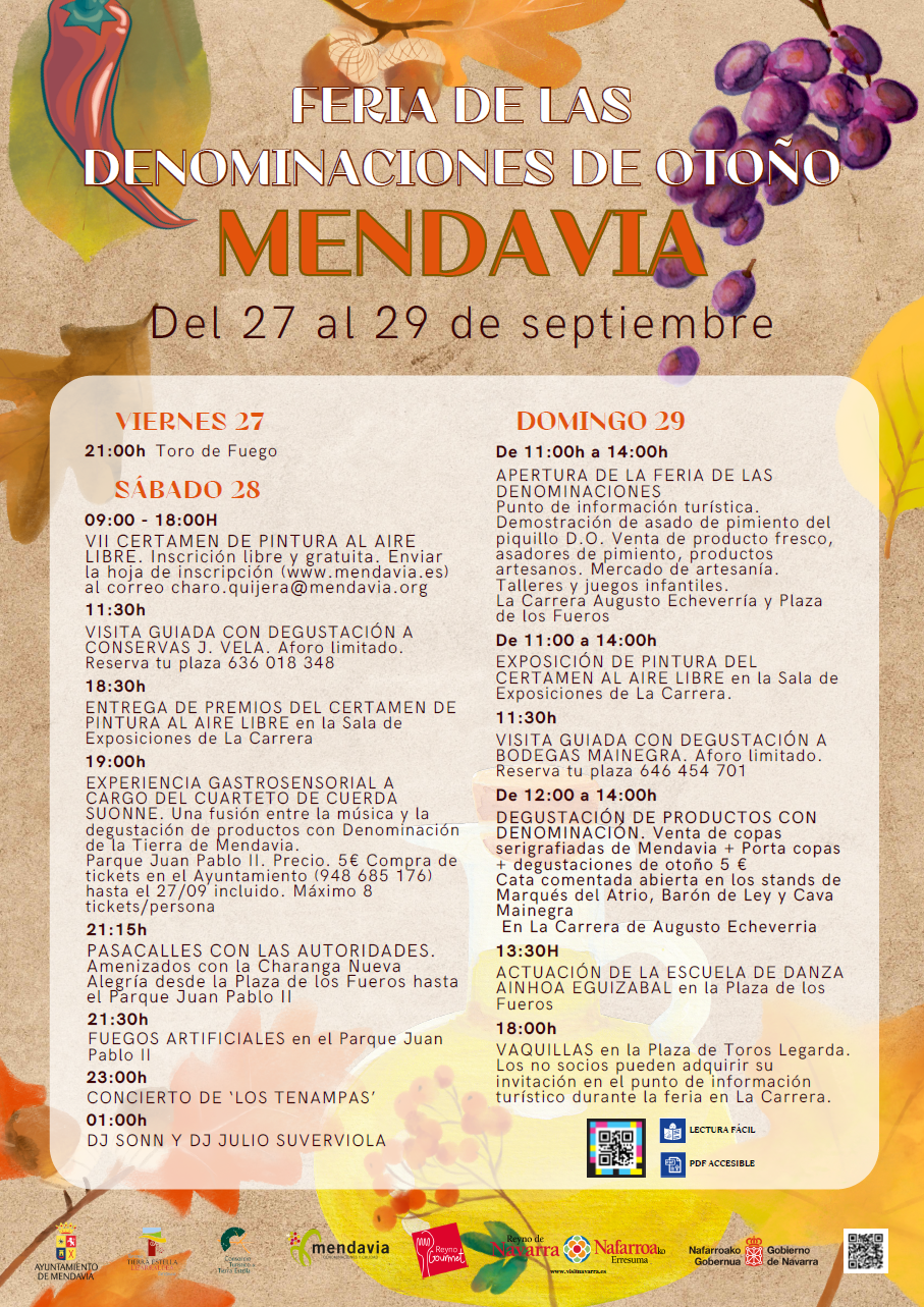 Mendavia, una de las localidades de mayor atractivo gastronómico de Navarra, celebra la Feria de las Denominaciones de Otoño el 28 y 29 de septiembre. Visitas guiadas, catas comentadas, feria de artesanía, deliciosas degustaciones gastronómicas y hasta una experiencia gastrosensorial tendrán en esta localidad de la ribera estellesa para celebrar el cambio de estación.