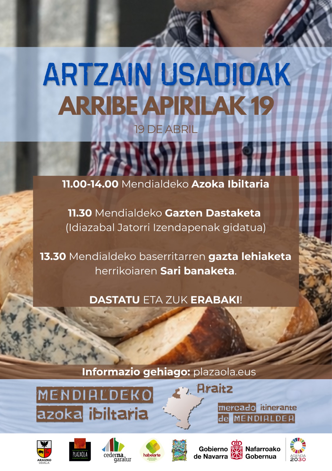 La localidad de Arribe, en el valle de Araitz, dará inicio a una nueva edición del Mercado Itinerante de Mendialdea (Mendialdeko Azoka Ibiltaria) el próximo 19 de abril de 2026 a partir de las 11:00 horas. El primer Mercado Itinerante de 2026 viene acompañado de una programación especial vinculada al mundo del pastoreo. Entre las actividades previstas destacan catas y un concurso de quesos de Mendialdea, que pondrán en valor la tradición quesera de la comarca.