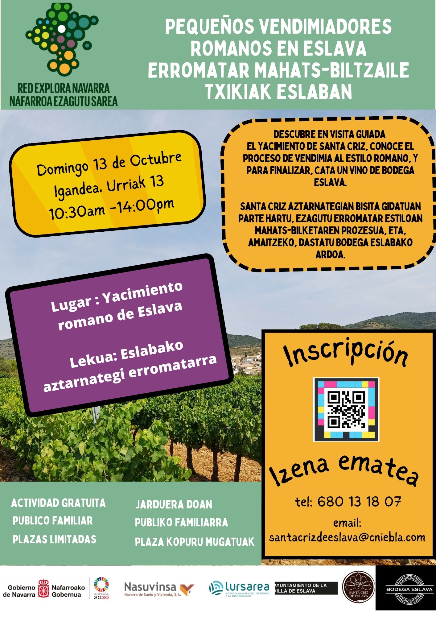 Para más información y reservas, consulta aquí: https://reservas.redexploranavarra.es/esp-SantaCriz-Eslava/TerritorioEslavaHistoriaySaborenlaAntiguaRoma