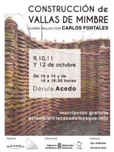 La Asciacion Estemblo organiza un curso gratuito sobre cestería del 9 al 12 de octubre de la mano de Carlos Fontales. Este curso se plantea como una `vereda´ abierta a todas las personas que quieran participar y ayudar a seguir `construyendo Dérula en comunidad´, a la vez que aprenden las técnicas para realizar vallados trenzados […]