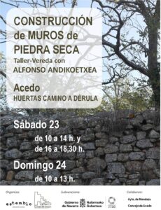 La asociación Estemblo organiza este próximo sábado 23 de octubre una vereda-taller para construir muros con la técnica de piedra seca en Acedo, en las huertas que acompañan el camino a Dérula, en concreto en el tramo junto a la Vía Verde. La actividad continuará previsiblemente también la mañana del domingo 24.
