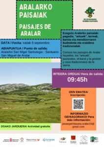 Conoce los paisajes de Aralar: hayedos, los "arkuek", pastizales, el karst y la gestión y usos tradicionales de la sierra el próximo sábado 9 de septiembre. La salida será a las 9:45 horas del Santuario San Miguel de Aralar. Inscríbite en esta actividad gratuita u obtén más información en el email jasangarritasuna.aralar23@gmail.com