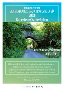 🚂¿Conoces la Via Verde de Bidasoa? ¿ Quieres conocer la historia del Tren Txikito? 🛤️El 11 de septiembre iremos de Doneztebe a…. y disfrutaremos del patrimonio,de la naturaleza y las leyendas de la Vía Verde del Bidasoa. 🚲Trae tu bicicleta y tu casco. La actividad es GRATIS. 📞Teléfono de inscripción: 607679903.